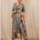 Naaira – Multi-Print Long Cape with Sage Green Dress