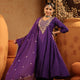 Immerse yourself in royal allure with this pre-stitched violet suit that radiates timeless grace. Embellished with exquisite gota and thread embroidery, it flows beautifully with every movement. Perfect for festive evenings and elegant gatherings, this piece blends tradition with modern sophistication.